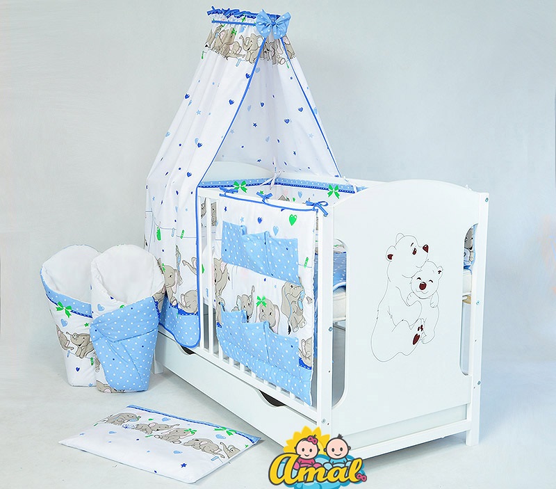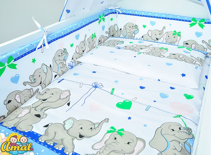 Trojdielna súprava do postieľky vyrobená z vysokokvalitnej bavlnenej látky.