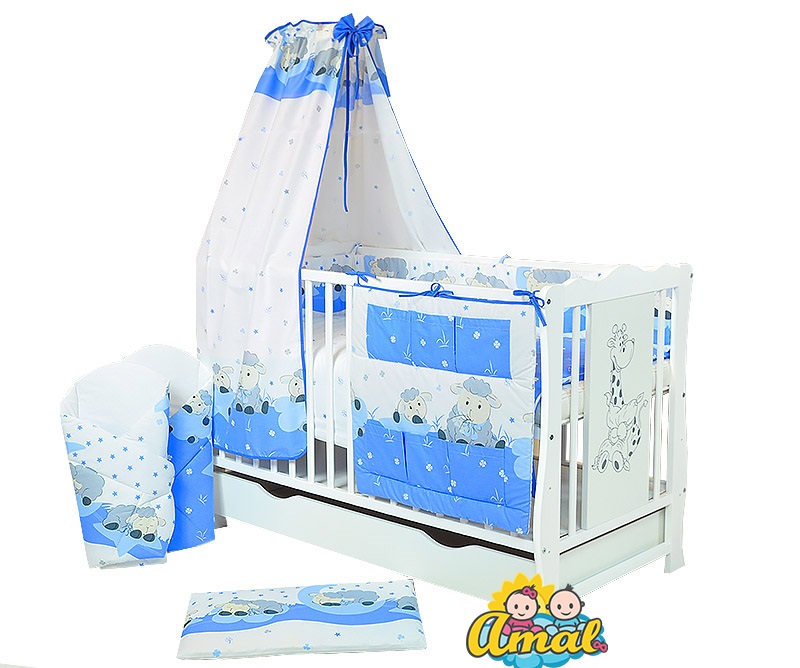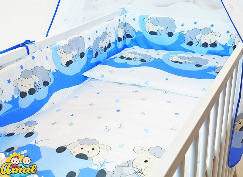 Štvordielna súprava do postieľky vyrobená z vysokokvalitnej bavlnenej látky.