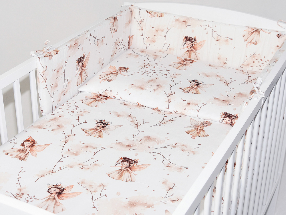 Päťdielna súprava do postieľky vyrobená z vysokokvalitnej bavlnenej látky.