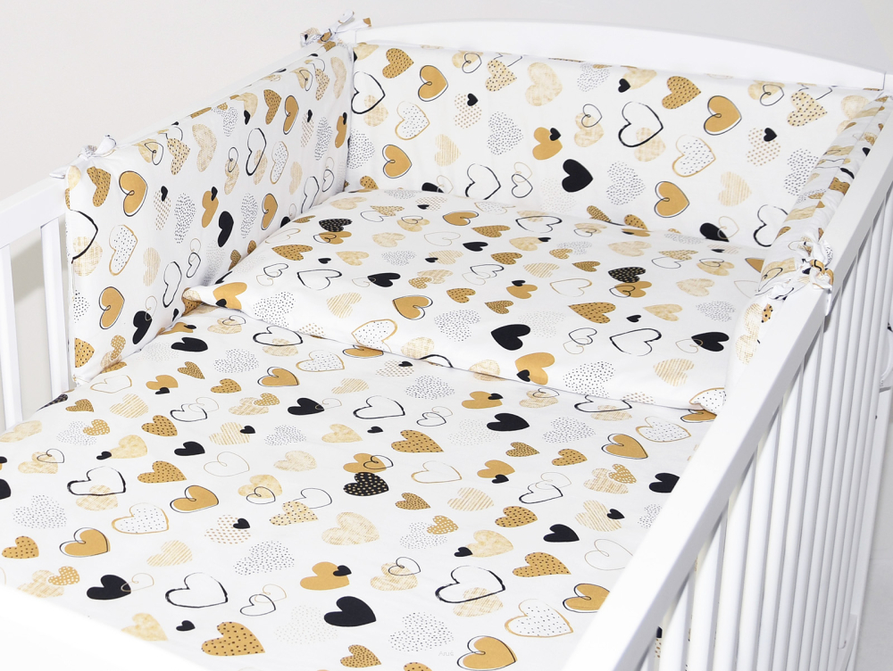 Päťdielna súprava do postieľky vyrobená z vysokokvalitnej bavlnenej látky.