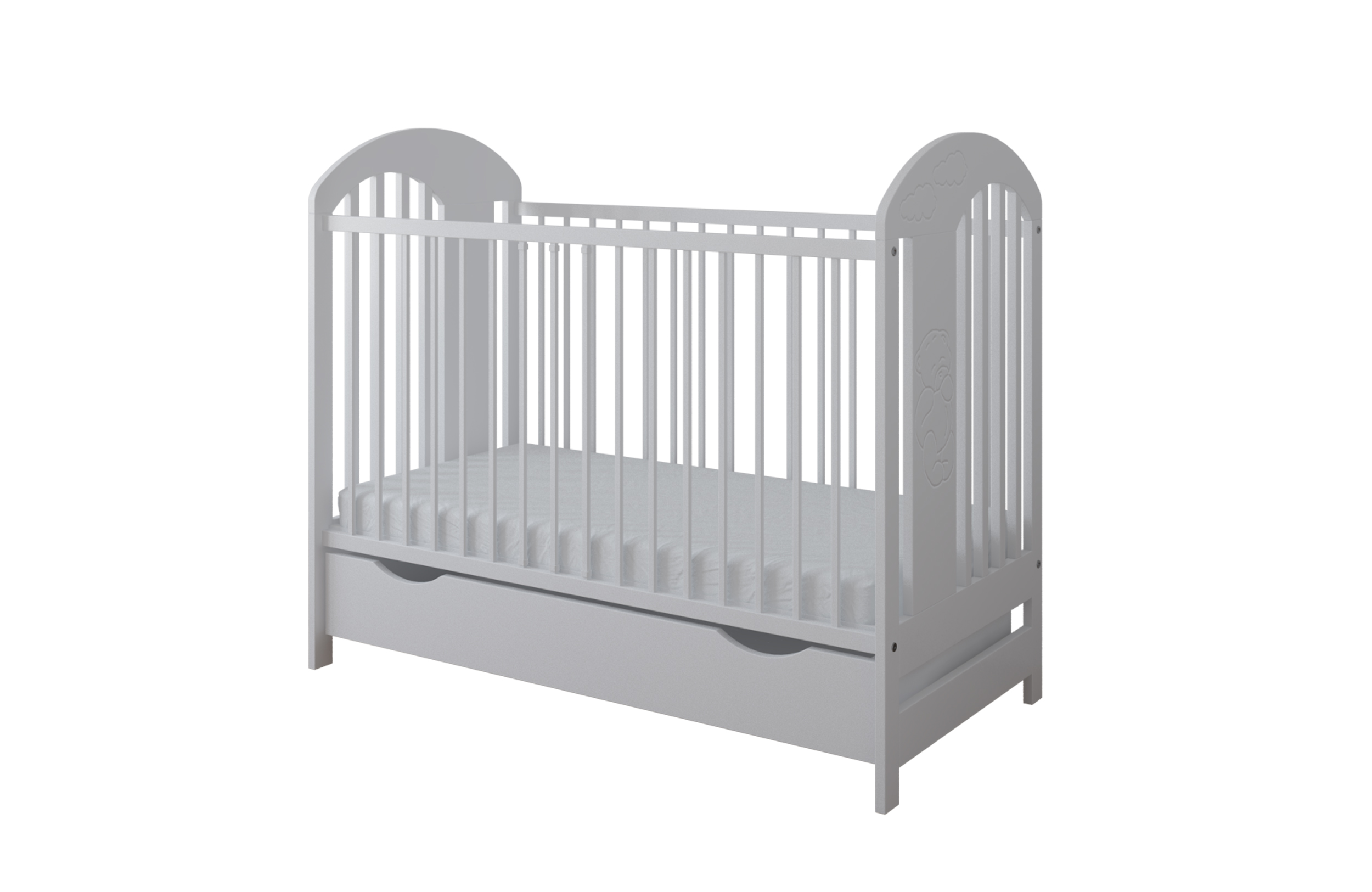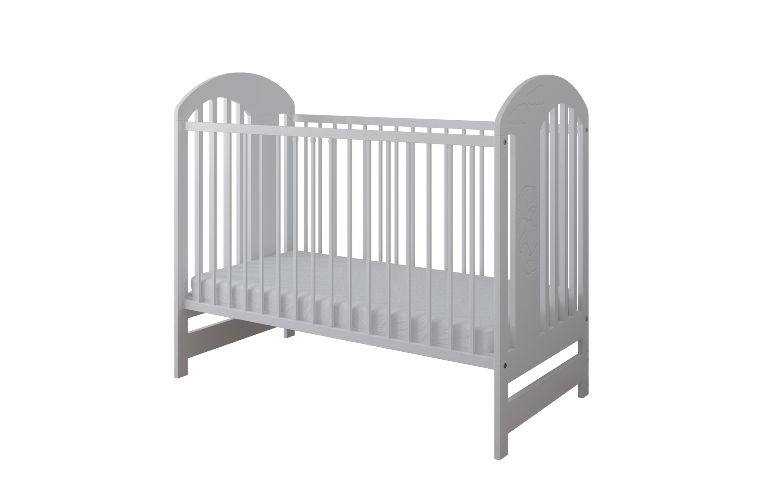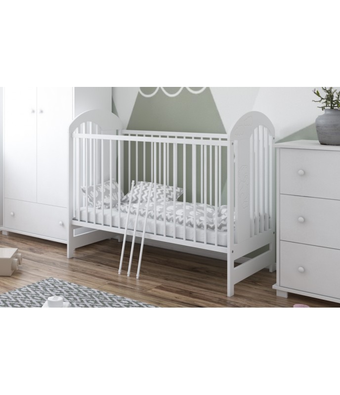 V strede jednej bočnice má vyberateľné tyčky. Rošt postieľky sa dá regulovať do troch polôh. Rozmer 120x60 cm, vhodná pre deti do 3 rokov.