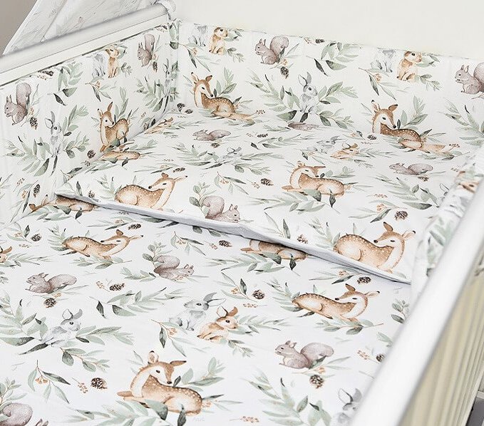 V cene kompletu je zahrnutý matrac a súprava do postieľky - vankúšik a paplónik - obliečky, výplne, ochranný mantinel okolo hlavičky