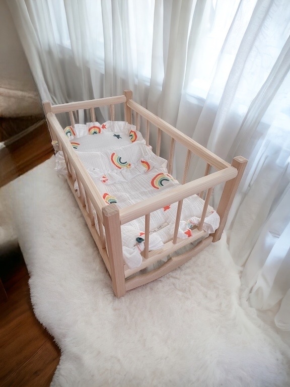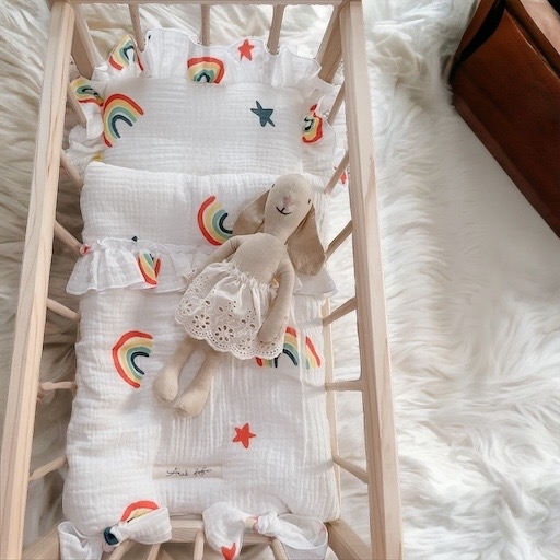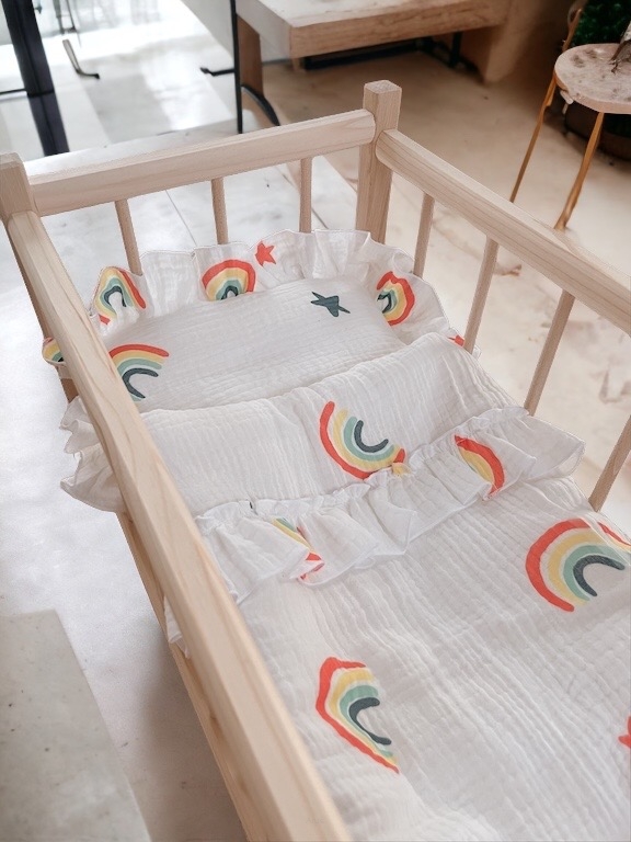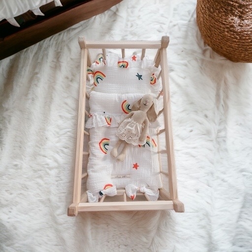 Kolíska pre bábiky s mušelínovou súpravou, Dúha