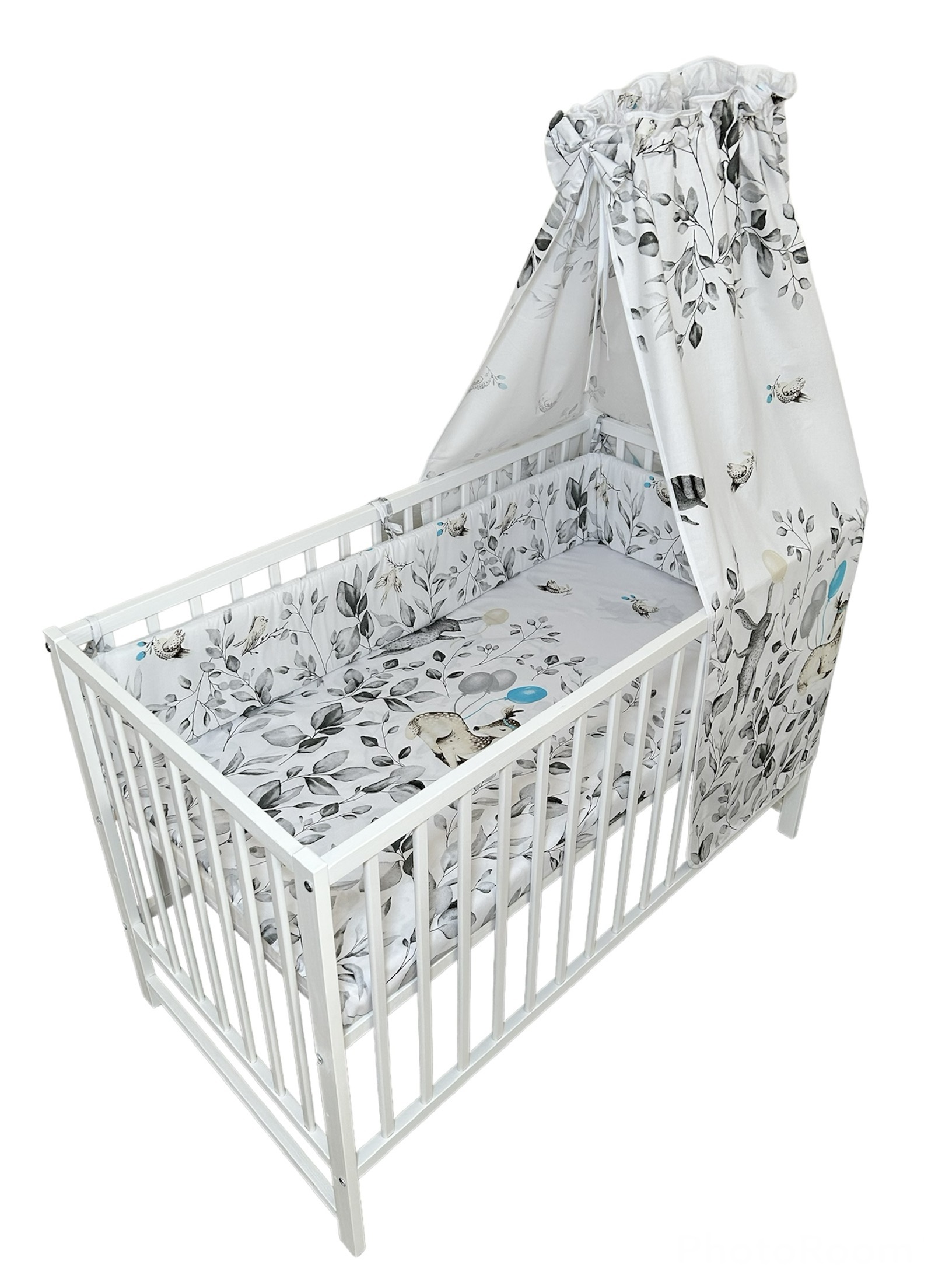 V cene kompletu je zahrnutý matrac a súprava do postieľky - vankúšik a paplónik - obliečky, výplne, ochranný mantinel okolo hlavičky