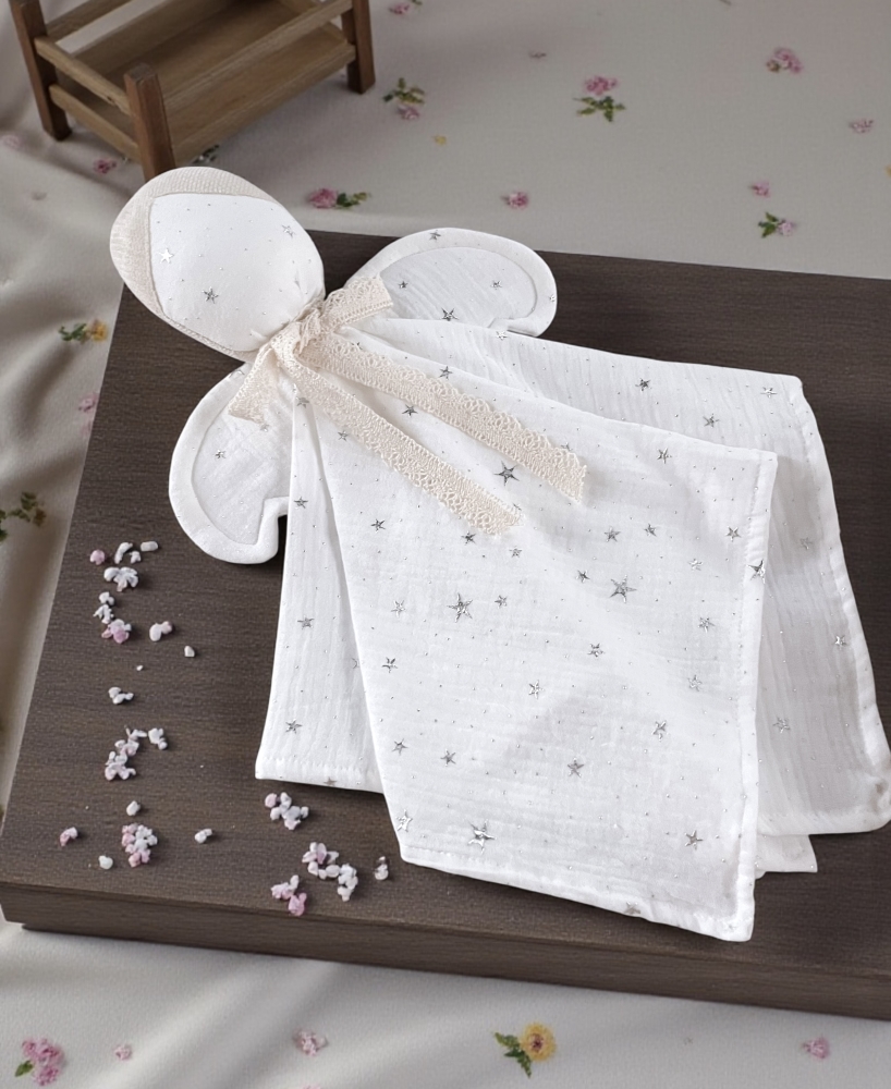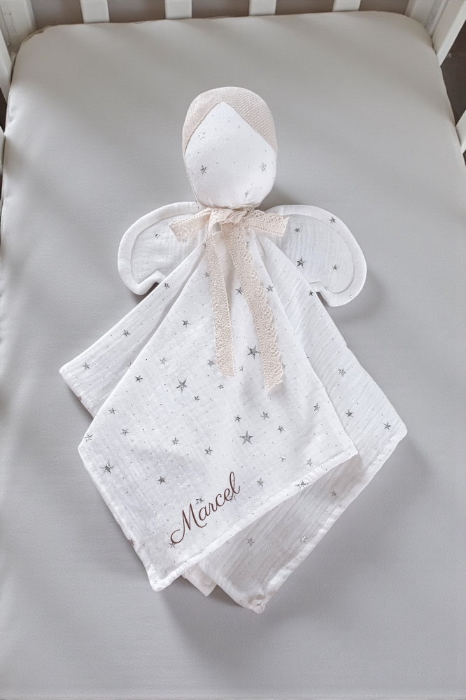 Detský látkový maznáčik je skvelým spoločníkom pre vaše dieťatko už od narodenia. Bude ho sprevádzať na cestách aj v postieľke. Jemný, mäkký materiál je pre detskú pokožku príjemný na dotyk. Zachováva vôňu domova, a tým dodáva dieťatku pocit bezpečia mimo na cestách alebo v neprítomnosti matky. Maznáčik je vyrobený zo 100 % z mušelínovej bavlny. Rozvíja zrak, koordináciu pohybov. Rozvíja dotykové zmysly a správny úchyt ručičiek.