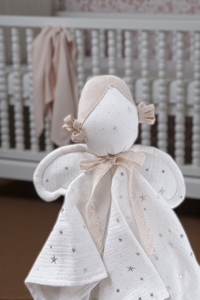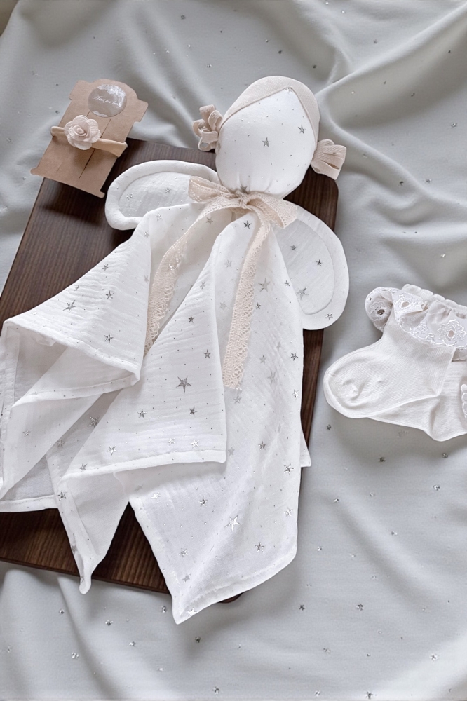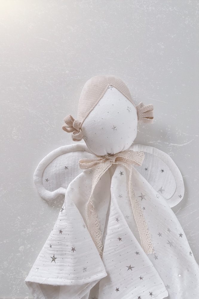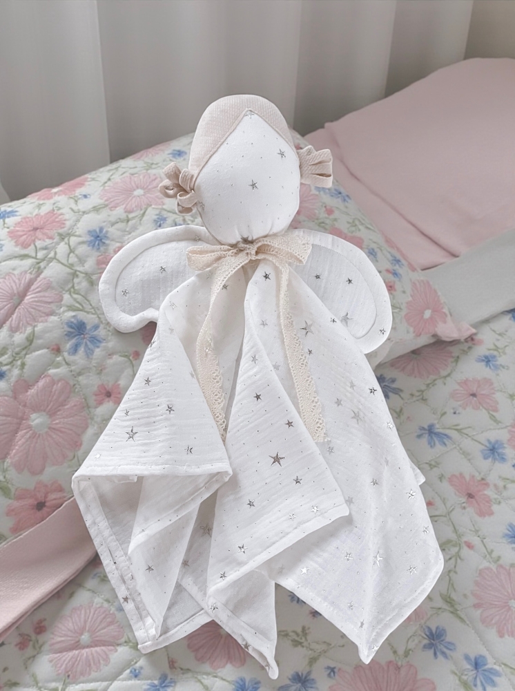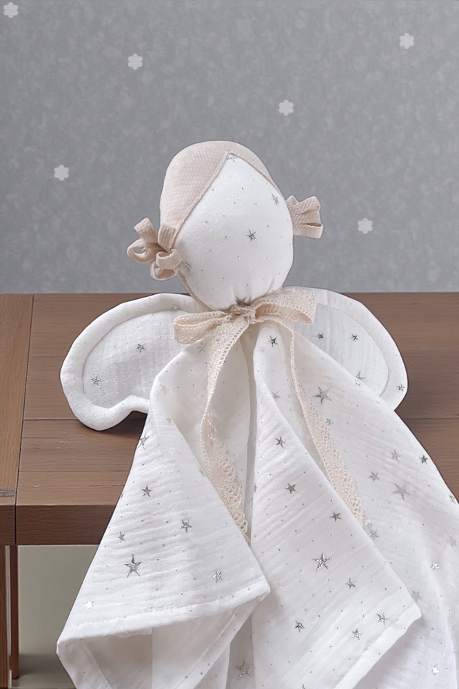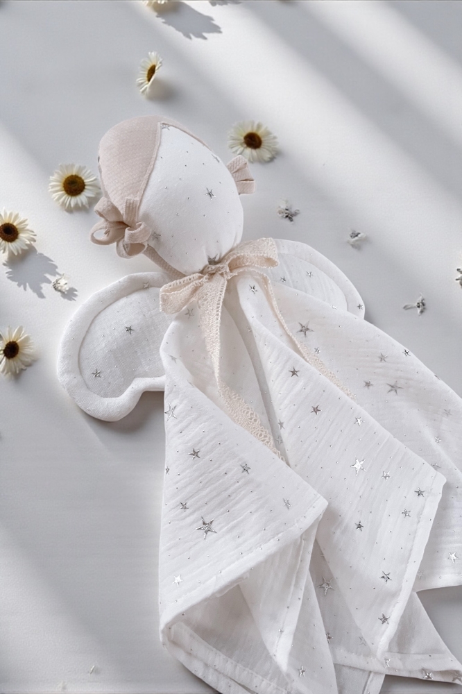 Detský látkový maznáčik je skvelým spoločníkom pre vaše dieťatko už od narodenia. Bude ho sprevádzať na cestách aj v postieľke. Jemný, mäkký materiál je pre detskú pokožku príjemný na dotyk. Zachováva vôňu domova, a tým dodáva dieťatku pocit bezpečia mimo na cestách alebo v neprítomnosti matky. Maznáčik je vyrobený zo 100 % z mušelínovej bavlny. Rozvíja zrak, koordináciu pohybov. Rozvíja dotykové zmysly a správny úchyt ručičiek.