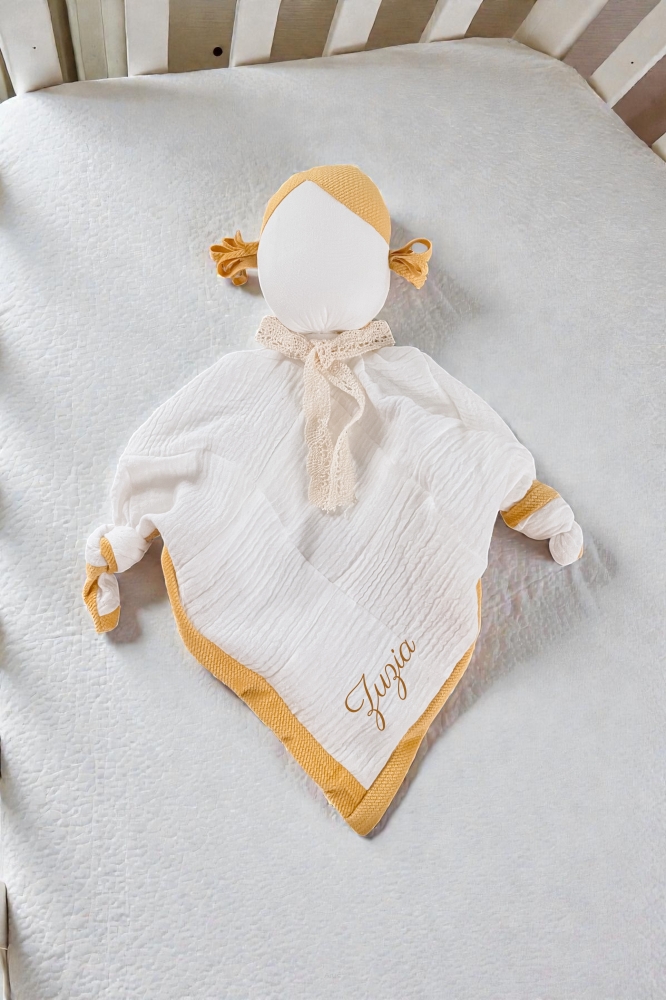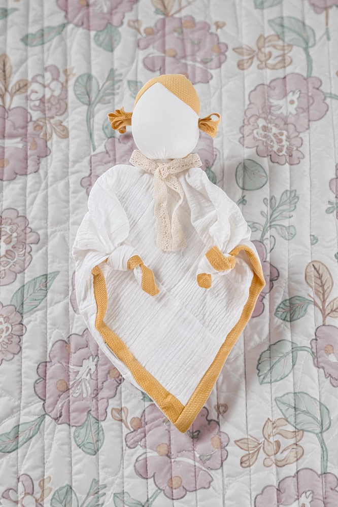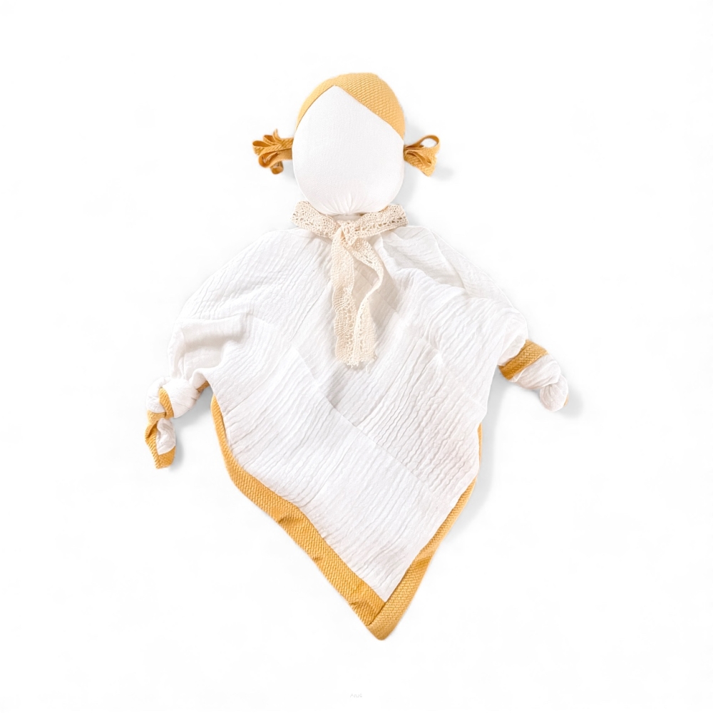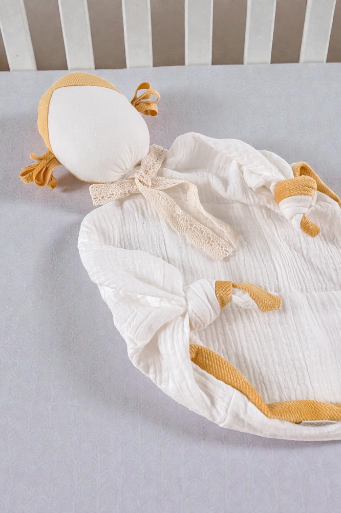 Detský látkový maznáčik je skvelým spoločníkom pre vaše dieťatko už od narodenia. Bude ho sprevádzať na cestách aj v postieľke. Jemný, mäkký materiál je pre detskú pokožku príjemný na dotyk. Zachováva vôňu domova, a tým dodáva dieťatku pocit bezpečia mimo na cestách alebo v neprítomnosti matky. Maznáčik je vyrobený zo 100 % z mušelínovej bavlny. Rozvíja zrak, koordináciu pohybov. Rozvíja dotykové zmysly a správny úchyt ručičiek.